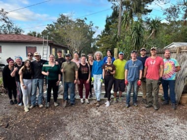 Although this effort took place just before 2025, it still deserves to be mentioned. After Hurricanes Milton and Helene, we traveled to St. Petersburg, Florida, to help repair damage at Sustainable Family Services – an organization providing mental health, wellness, and educational support to children and families facing significant challenges. We cleaned debris and landscaped the grounds, repainted buildings, and helped build key areas for the kids by installing a sensory path, outdoor play kitchen, music wall, and a garden fence (just to name a few!)